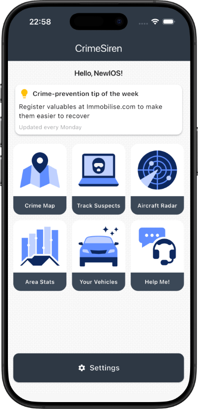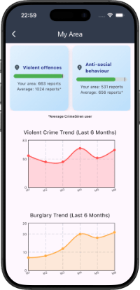 CrimeSiren isn’t just an app – it’s a safety suite of crime-stopping tools to keep you informed about your area and give you peace of mind.